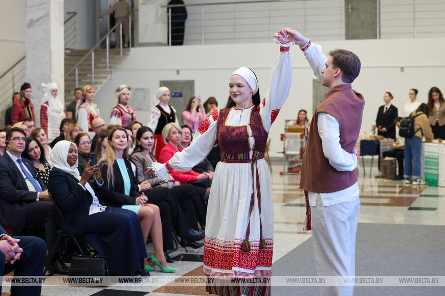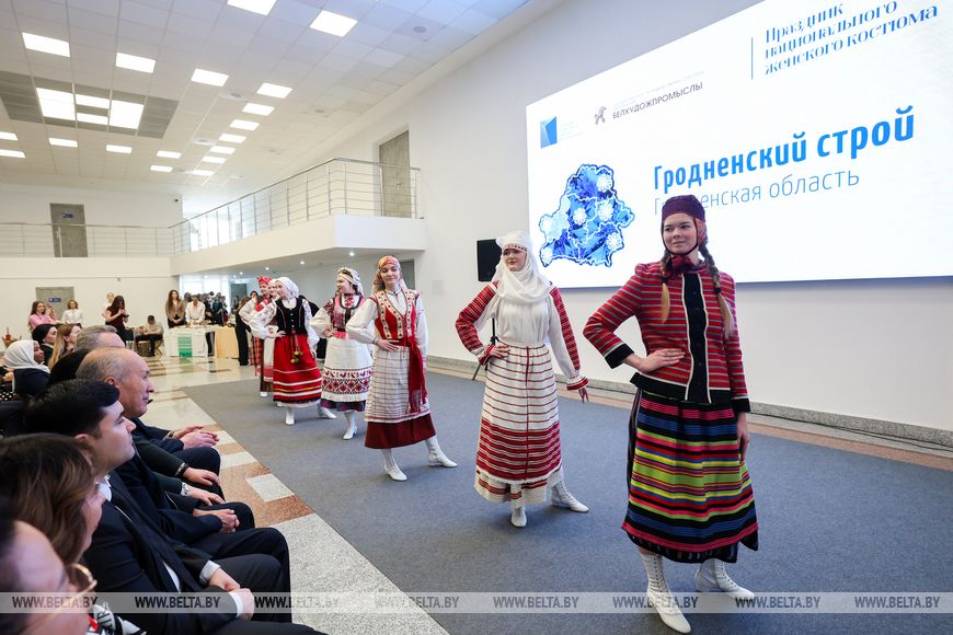 11 марта, Минск /Корр. БЕЛТА/. Почему национальный костюм никогда не выйдет из моды, в беседе с журналистами рассказал генеральный директор ГПТО “Белхудожпромыслы” Александр Корбут. Он сегодня принял участие в праздничном мероприятии, приуроченном к Году белорусской женщины, в Белорусском государственном университете иностранных языков, передает корреспондент БЕЛТА.
